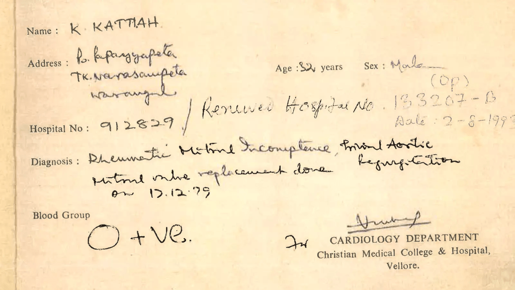 It was diagnosed at CMC that his mitral valve in the heart needed to be replaced, and it could be done. His admission number in that life-changing hospital, 912829, is archaic. For the entire operation, his family spent Rs 50,000, mostly borrowed.